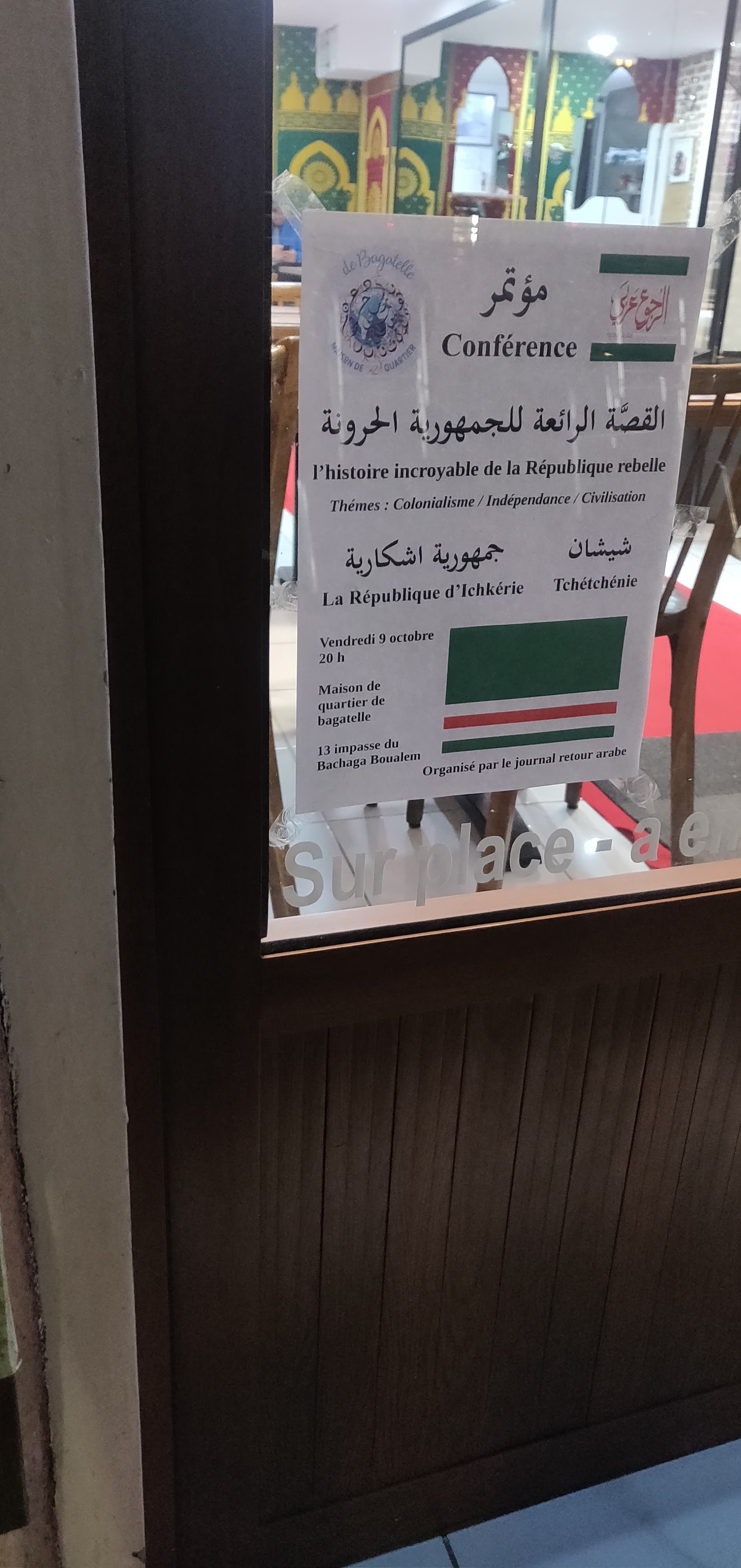 المؤتمر عن جمهورية إشكاريا كان في دار الحي في حي ” باغاتل ” . وأصبح ناجح لأن الجمهور فهم تاريخ هذا البلد. والتحديات بين العلاقات شمال جنوب. شاهدنا مع نظر تاريخي وثقافي حال هذه الجمهورية. ومع أبطالهم كما جوهر دوداييف رحمه الله تعلمنا مقاوماتهم. كان المؤتمر كما حكاية لكن بإطار صحفي. الأسلوب فرَّح الجمهور ودفعهم على أسئلات طيبات