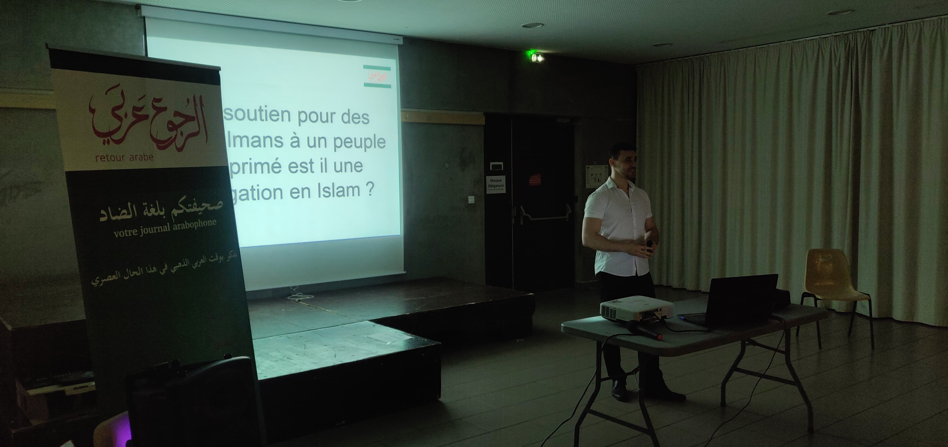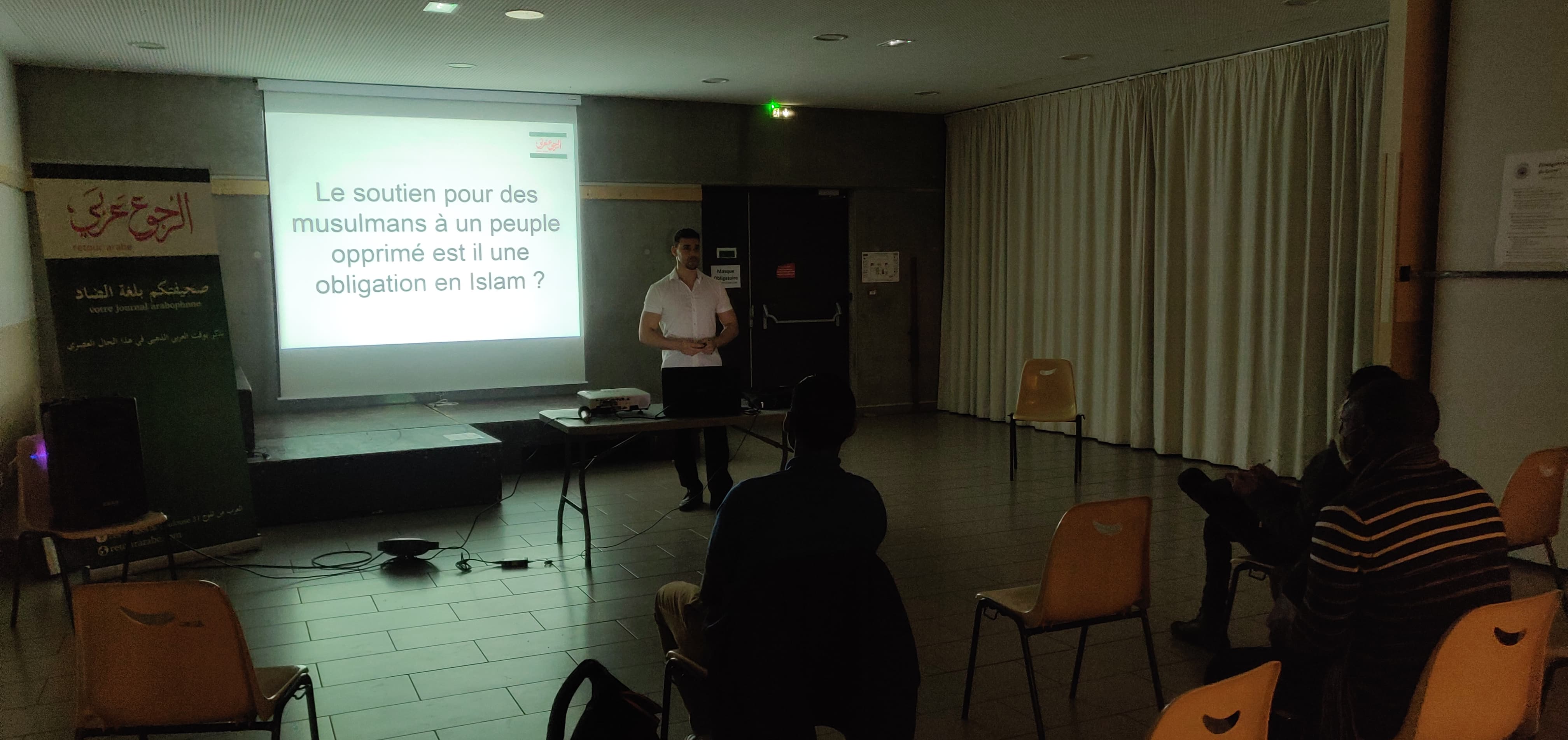 للمرة الثانية في مدينة ثلوج علقنا الملصقات عن حدث الرجوع عربي. التجار أصبحوا سعداء بذلك وسهَّلوا لصورة اللغة العربية في شوارع وسط المدينة. وهذه مشية جميلة. وأكثر أن هذا الموضوع يذكّرعن الوطنية والمقاومة لأنهم أعزاء علينا العرب