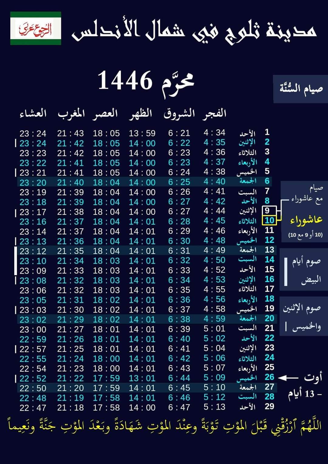شهر محرَّم 1446 في شمال الأندلس سليم بن عبد الرحمان Salim Benabderrahmane26 جويلية 2024Non classé التنقل بين المواضيع السابقالتالي للتَّحميل على الهاتف الذَّكي أو للطّباعة السَّلام عليكم للتَّحميل على الهاتف الذَّكي أو للطّباعة Partager : النقر للمشاركة على X (فتح في نافذة جديدة) X انقر للمشاركة على فيسبوك (فتح في نافذة جديدة) فيس بوك إعجاب تحميل...